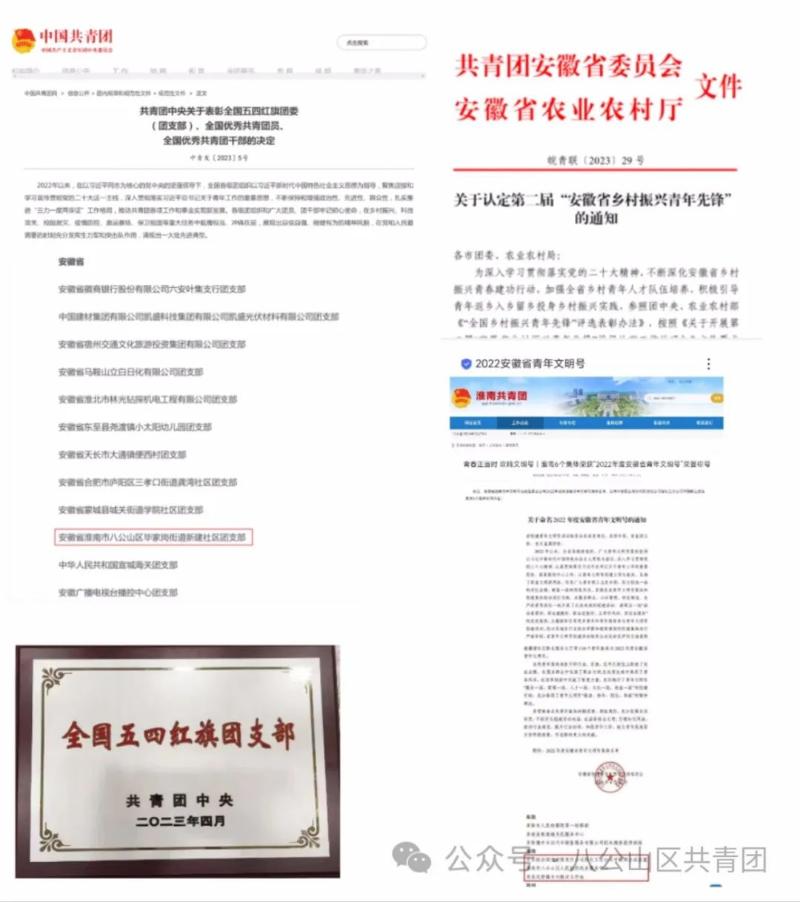 榜样引领典型赋能。肩负使命,砥砺前行,付出努力,也收获了认可和鼓励。毕家岗街道新建社区团支部荣获“全国五四红旗团支部”荣誉称号,区人民政府政务服务中心荣获“2022年度安徽省青年文明号”荣誉称号,推报的京创食品有限公司总经理荣获省级“乡村振兴青年先锋”荣誉称号。